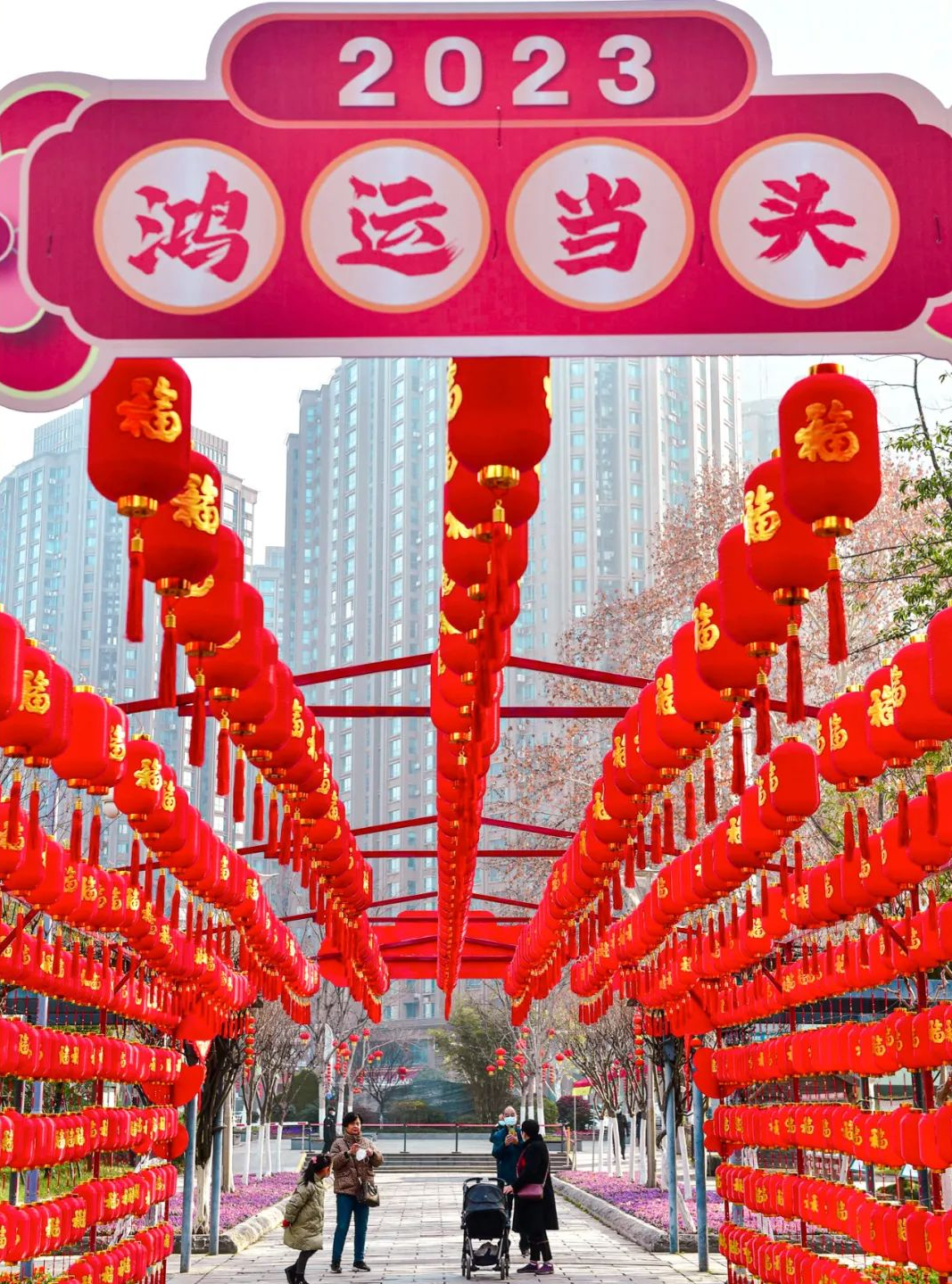 据了解1月8日(农历腊月十七)至2月6日(农历正月十六)武汉主要城市道路(含部分桥梁)以及窗口地带、商业体、特色街区周边等169条路段悬挂2.15万余盏灯笼、中国结今年悬挂的景观灯笼除了最常见的红灯笼还有中国结、“春”字造型、“美丽中国”字样中国结等灯饰
