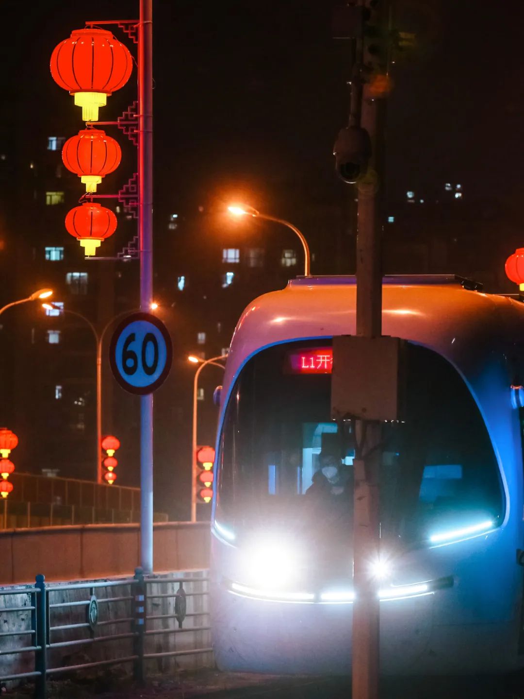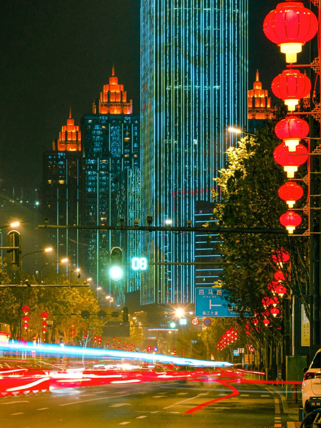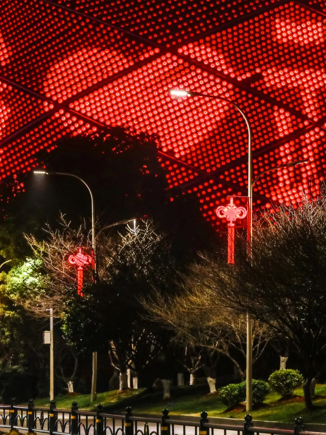 红灯笼、中国结与景观灯光秀交相辉映城市夜景别样美丽喜庆氛围更浓厚
