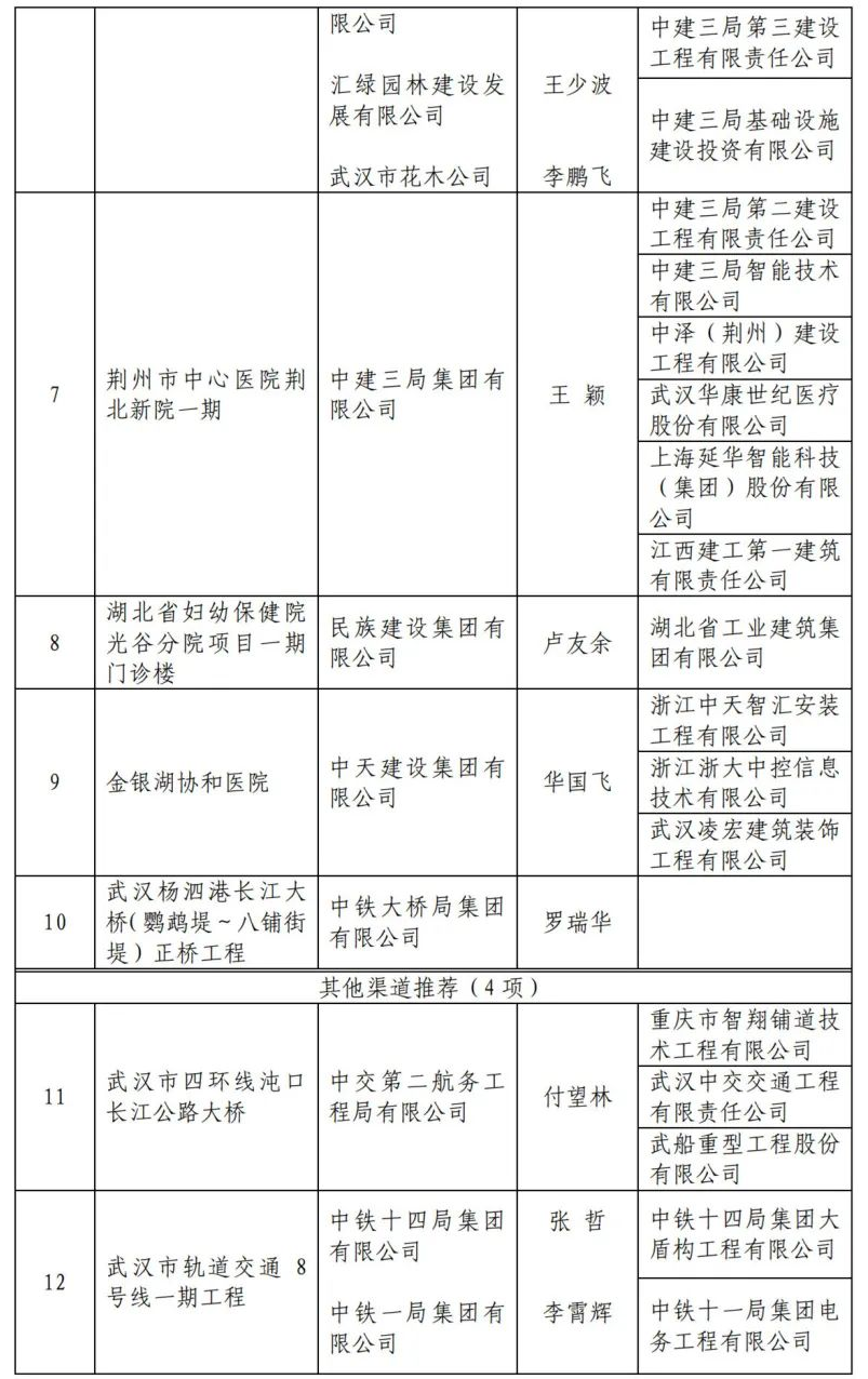 2020-2021年度湖北获得中国建设工程鲁班奖