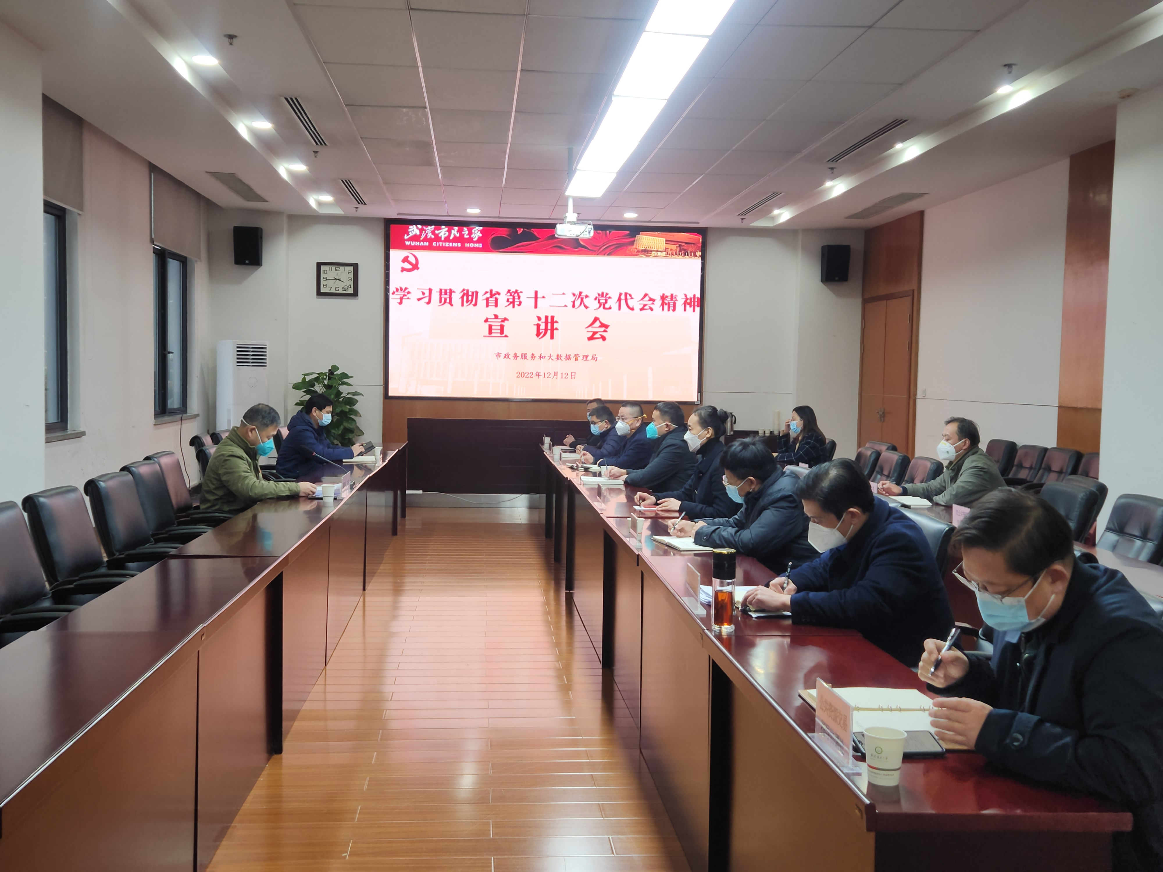 2022年12月12日,市政务服务和大数据管理局组织召开省第十二次党代会精神集中宣讲会。党组成员、市公共资源交易中心主任蔡正刚主持并开展集中宣讲。局机关处室、中心部门负责人参会。
