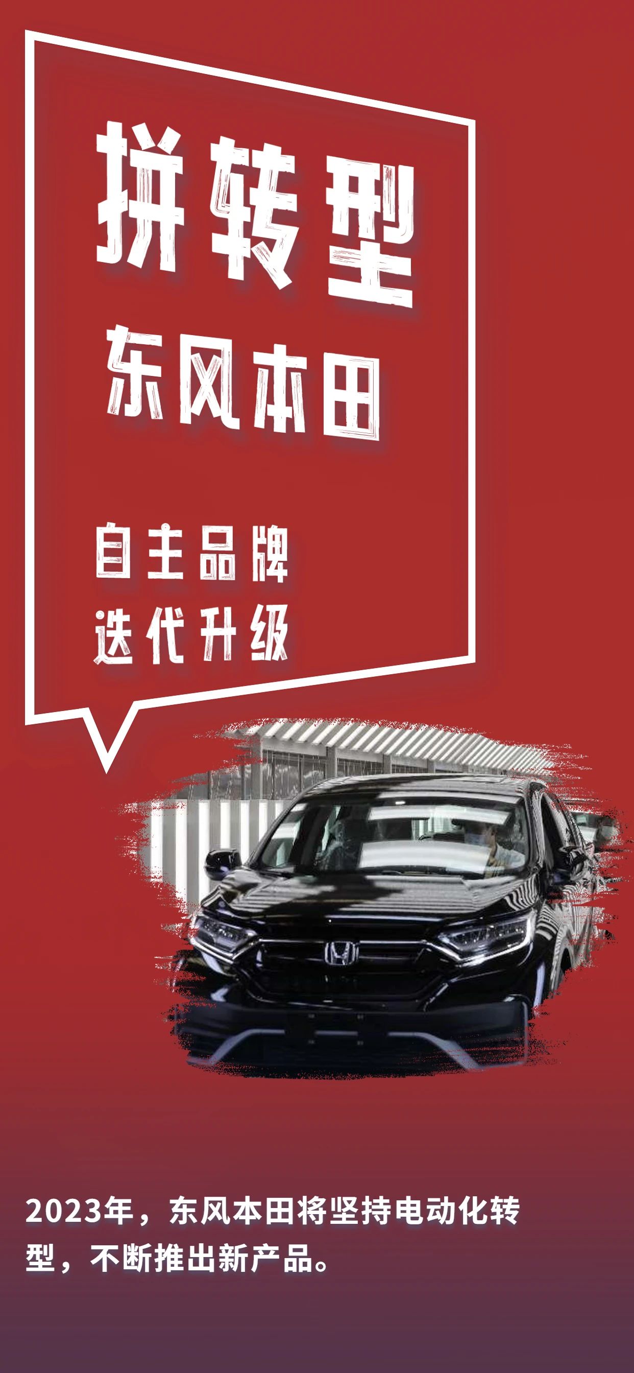 2023年,东风本田将坚持电动化转型,不断推出新产品。在新车型上,旗下多款产品迭代,R-V家族将迎来新成员;在新技术上,第四代i-MMD技术将继续布局,其中包含2款e:HEV车型和2款e:PHEV车型;在品牌上,全新自主品牌也将于年内发布。