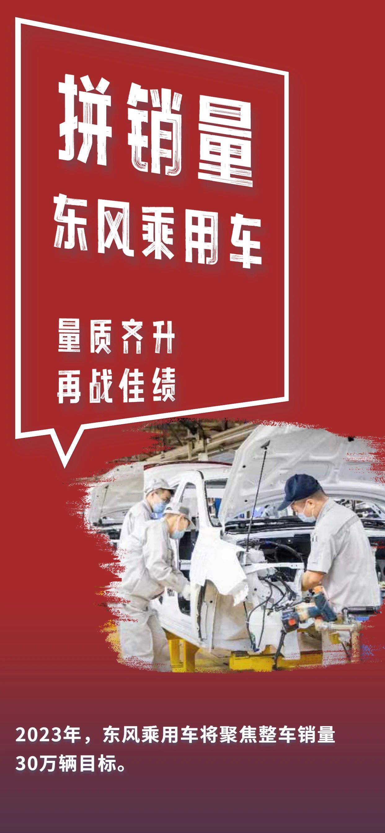 2023年,东风乘用车将聚焦整车销量30万辆目标,进一步加快品牌、新能源和数字化转型,加快高质量发展步伐。
