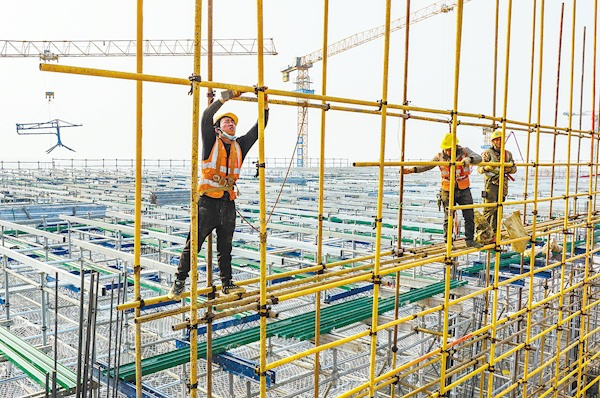 工人繁忙而有序地作业