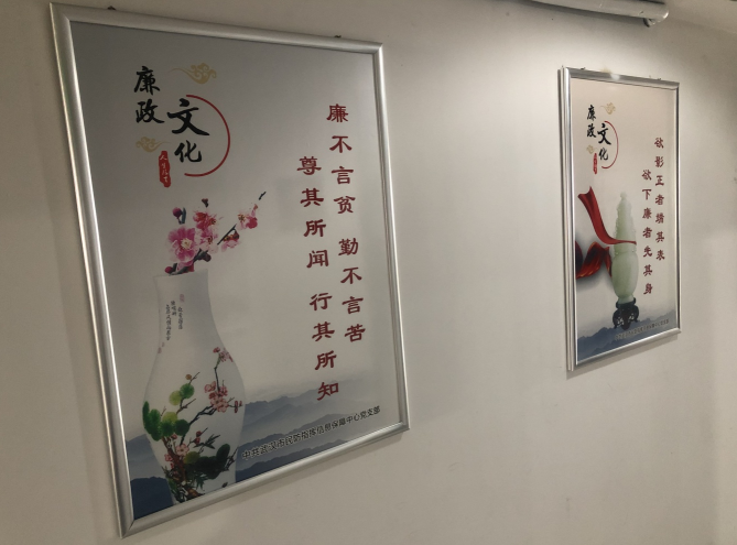 “廉不言贫,勤不言苦,尊其所闻,行其所知”“入于污泥而不染、不受资产阶级糖衣炮弹的侵蚀,是最难能可贵的品质”……走廊两侧悬挂着一幅幅图文并茂的廉政图板、一句句引人入胜的清风廉语,积极发挥了“倡廉于有形,润物于无声”的良好作用。“每天经过走廊时就会看到上面的名言警句,有着强烈的视觉和思想上的冲击,时刻提醒我们要行得正、站得直,做一个清廉守正、担当实干的共产党员。”信保中心党员干部们纷纷说。