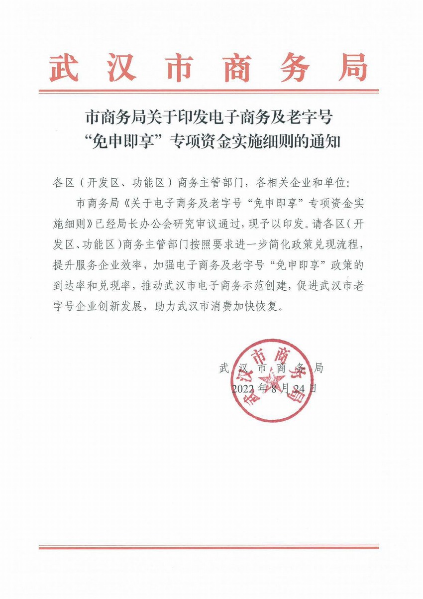 市商务局关于印发电子商务及老字号“免申即享”专项资金实施细则的通知