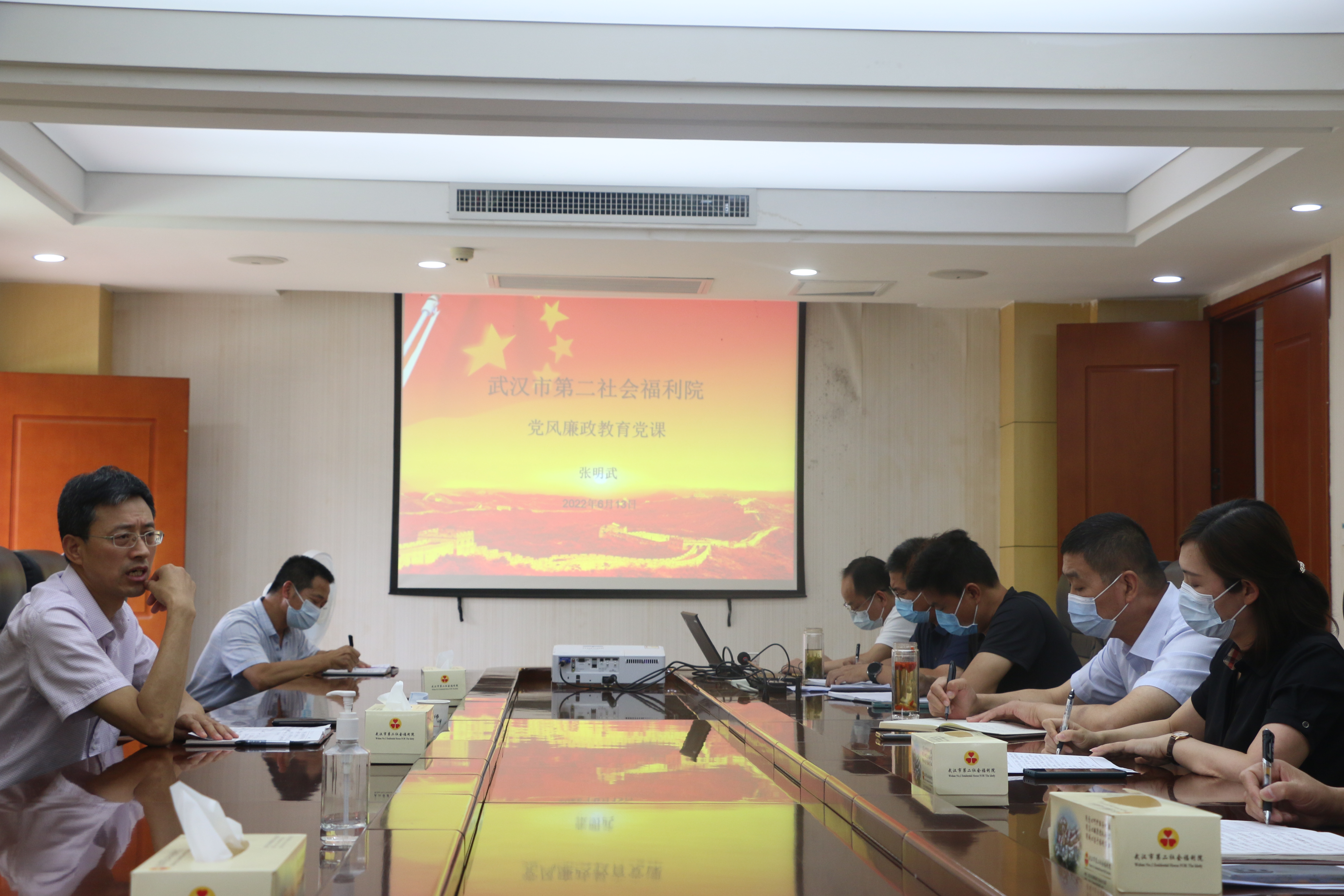 随后,张明武为该馆全体干部职工讲授了廉政党课,并提出三点要求:一是正确看待压力和挑战,努力适应新形势、新变化、新要求。二是持续擦亮康复特色品牌,推动事业创新发展。三是要做到干净安全,切实兜住个人、单位纪律底线。