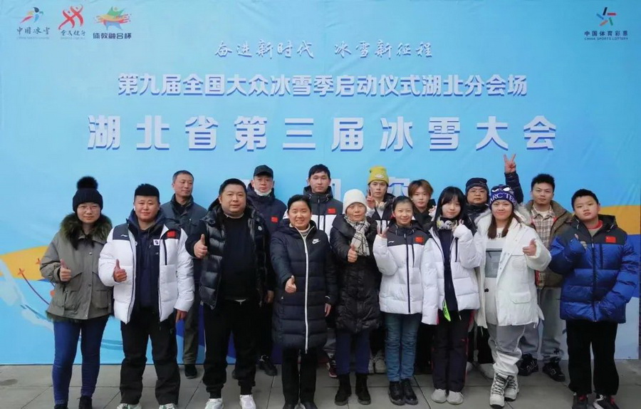 湖北省第三届冰雪大会,武汉队在比赛现场合影