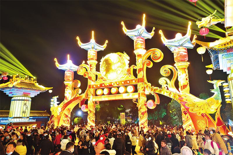 1月18日,黄陂木兰花乡“木兰不夜城”正式开街,吸引众多游客前往打卡。