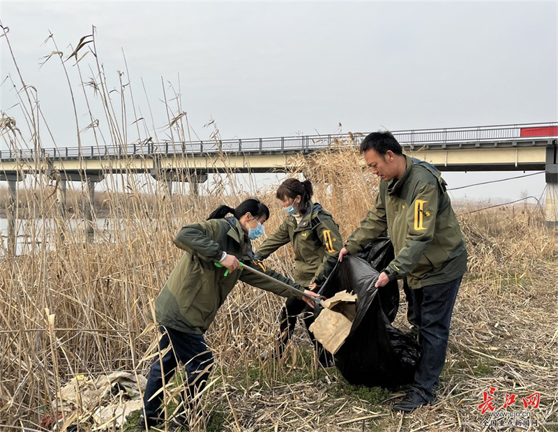 宣传活动结束后,沉湖湿地自然保护区管理局工作人员还前往湿地边开展清理垃圾活动。